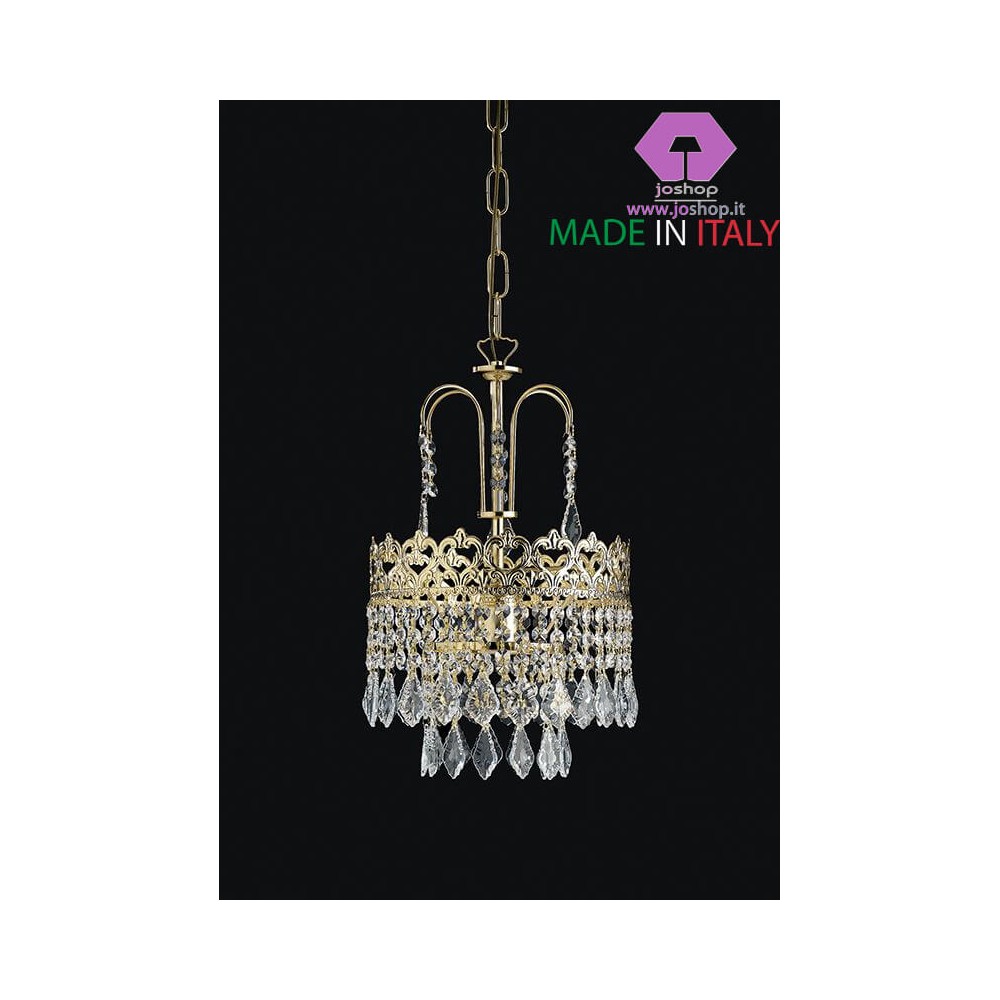 Splendido lume classico 1 luce, tutto in cristallo con inserti oro,...