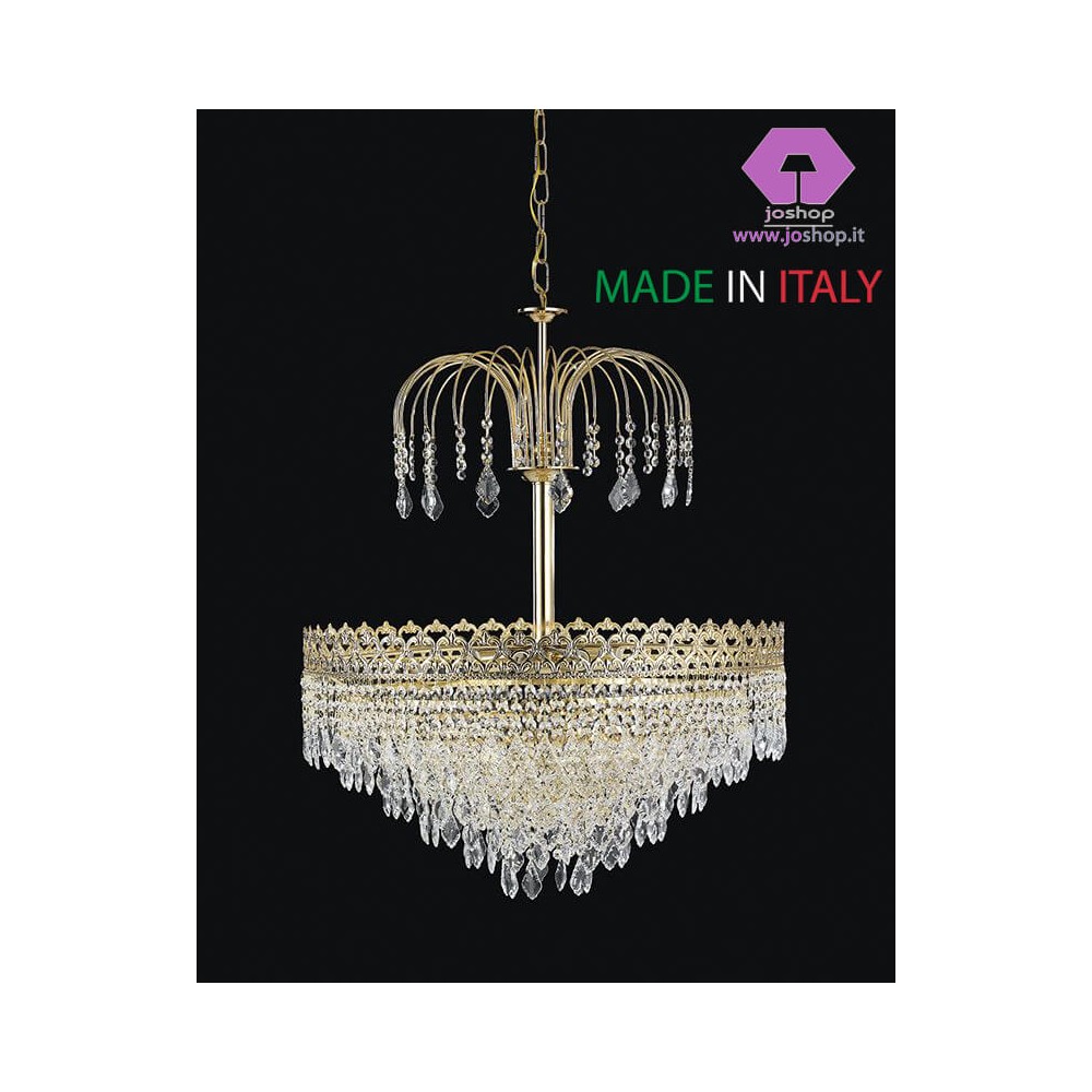 Splendido lume classico 1 luce, tutto in cristallo con inserti oro,...