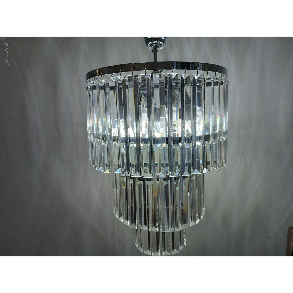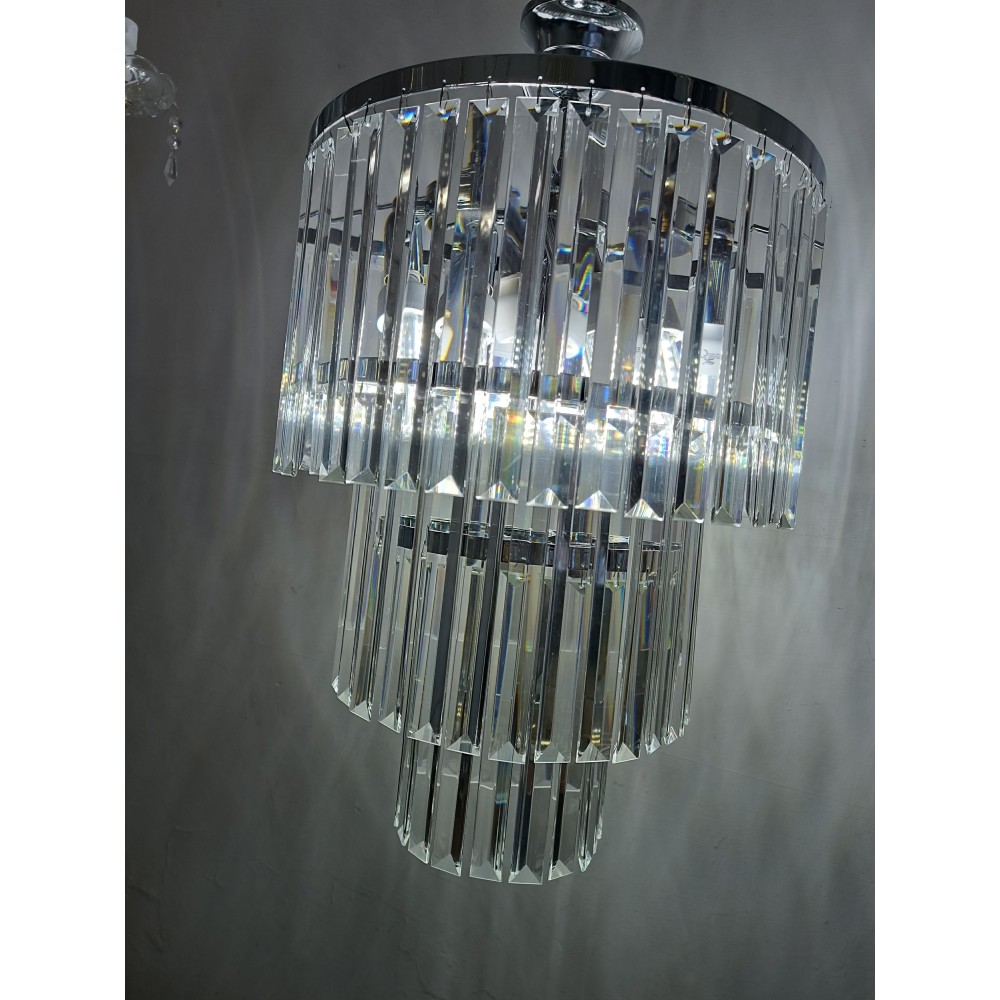Monta losanghe da 20 cm in cristallo tipo swarowski . 5 luci E 14 per una illuminazione uniforme.